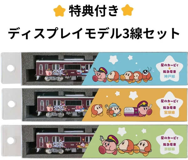 – | NEW ディスプレイモデル カービィ号3線セット(神戸線・宝塚線・京都線)大阪方先頭1両 ▶︎HANKYU DENSHA SHOP |