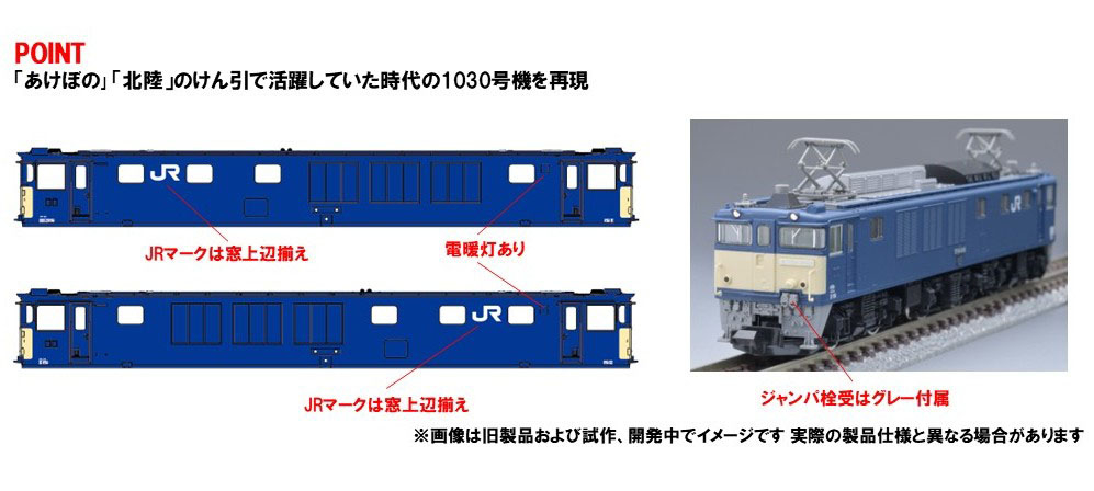 • 電暖表示灯があり、寝台特急のけん引で活躍した長岡車両センター所属当時の1030号機を再現