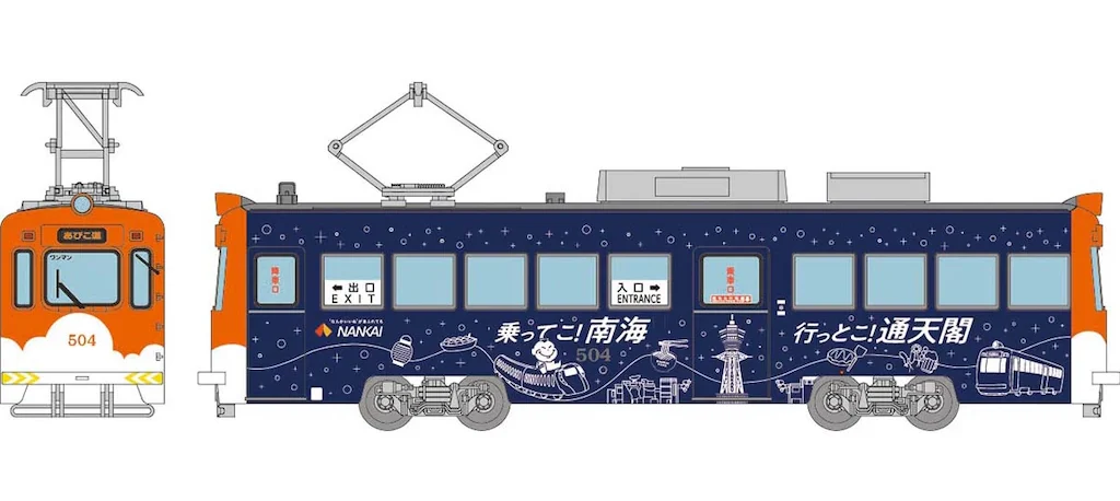 阪堺電車モ501形(504号車•乗ってこ!南海 行っとこ!通天閣ラッピング)について